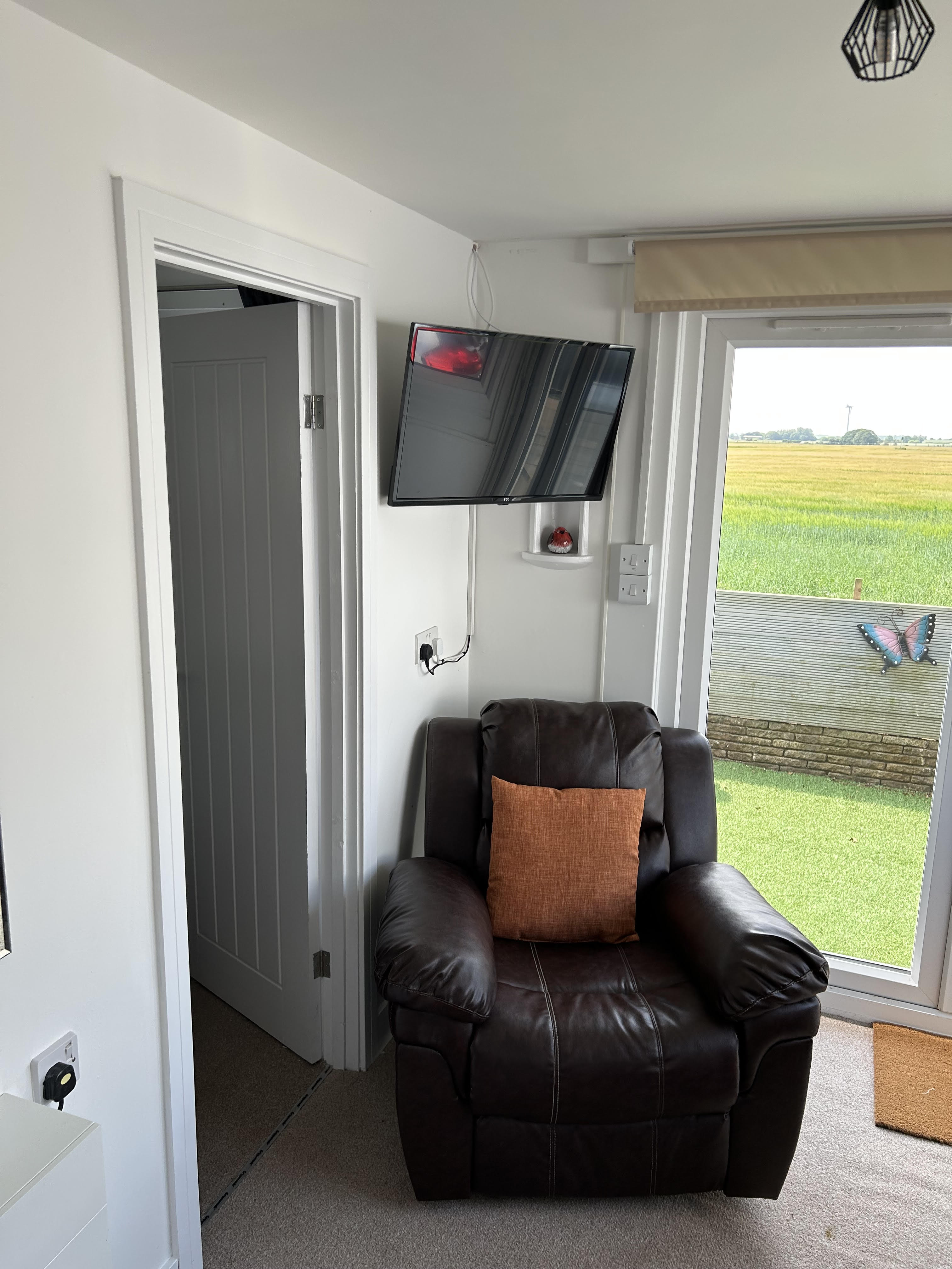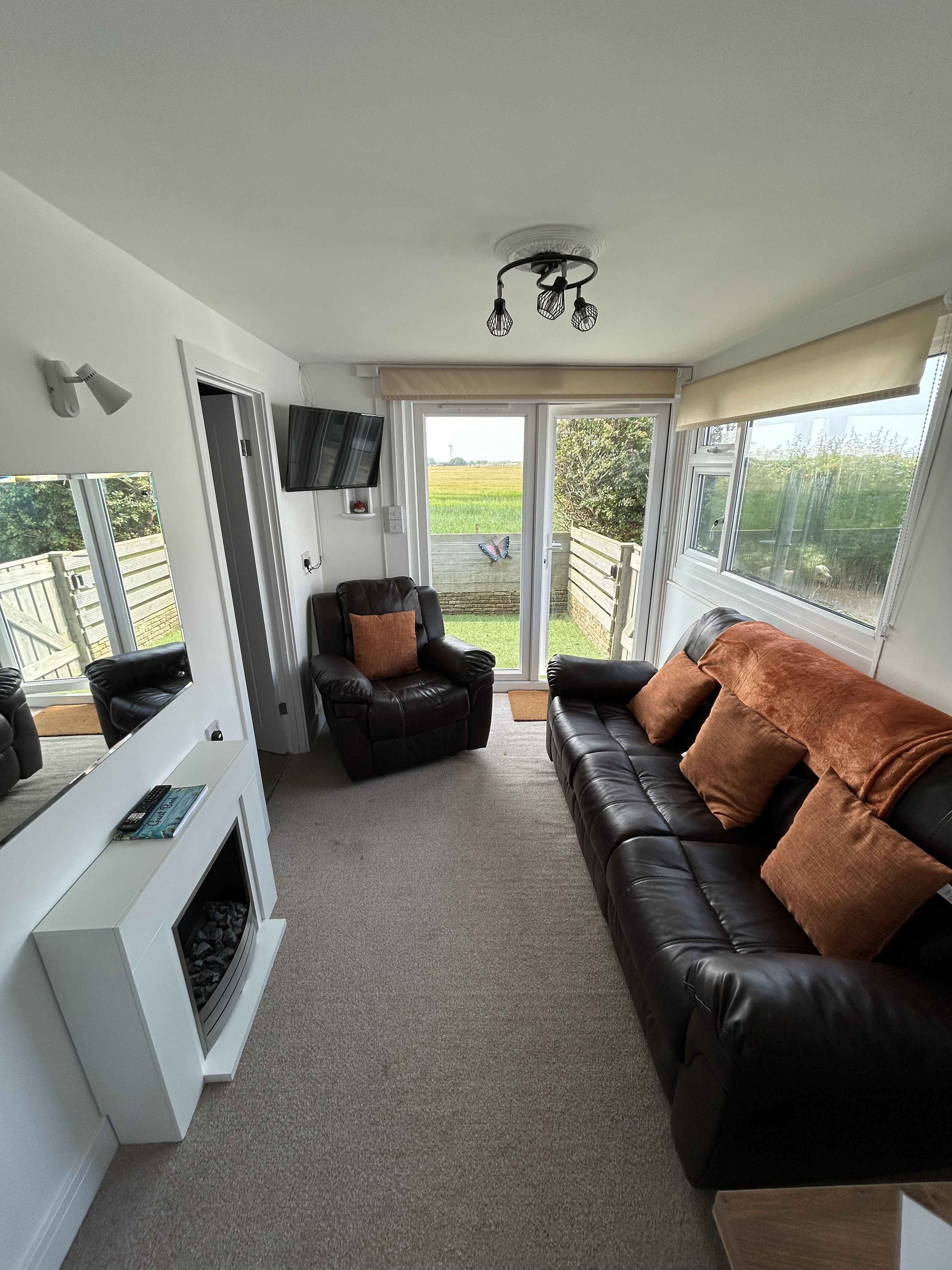 Beautiful, modern and spacious 2 bedroom chalet which backs onto open fields giving sea views.