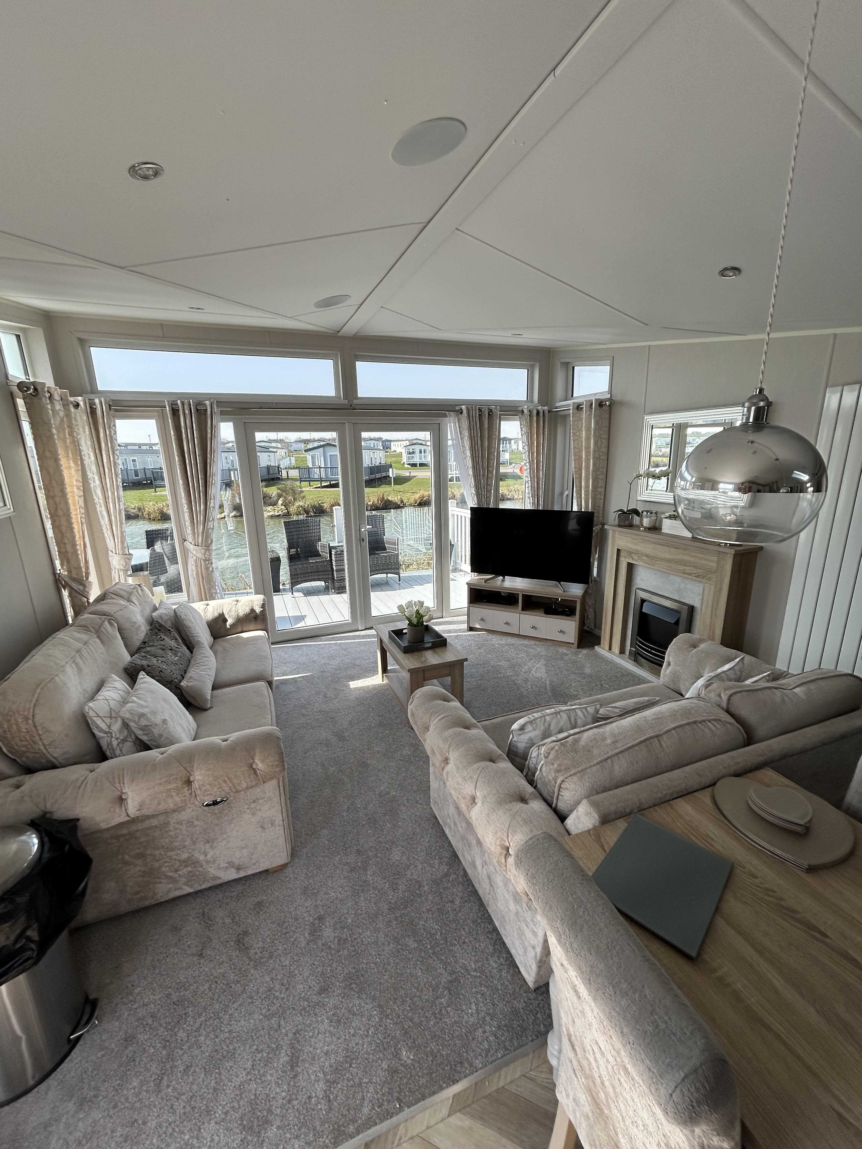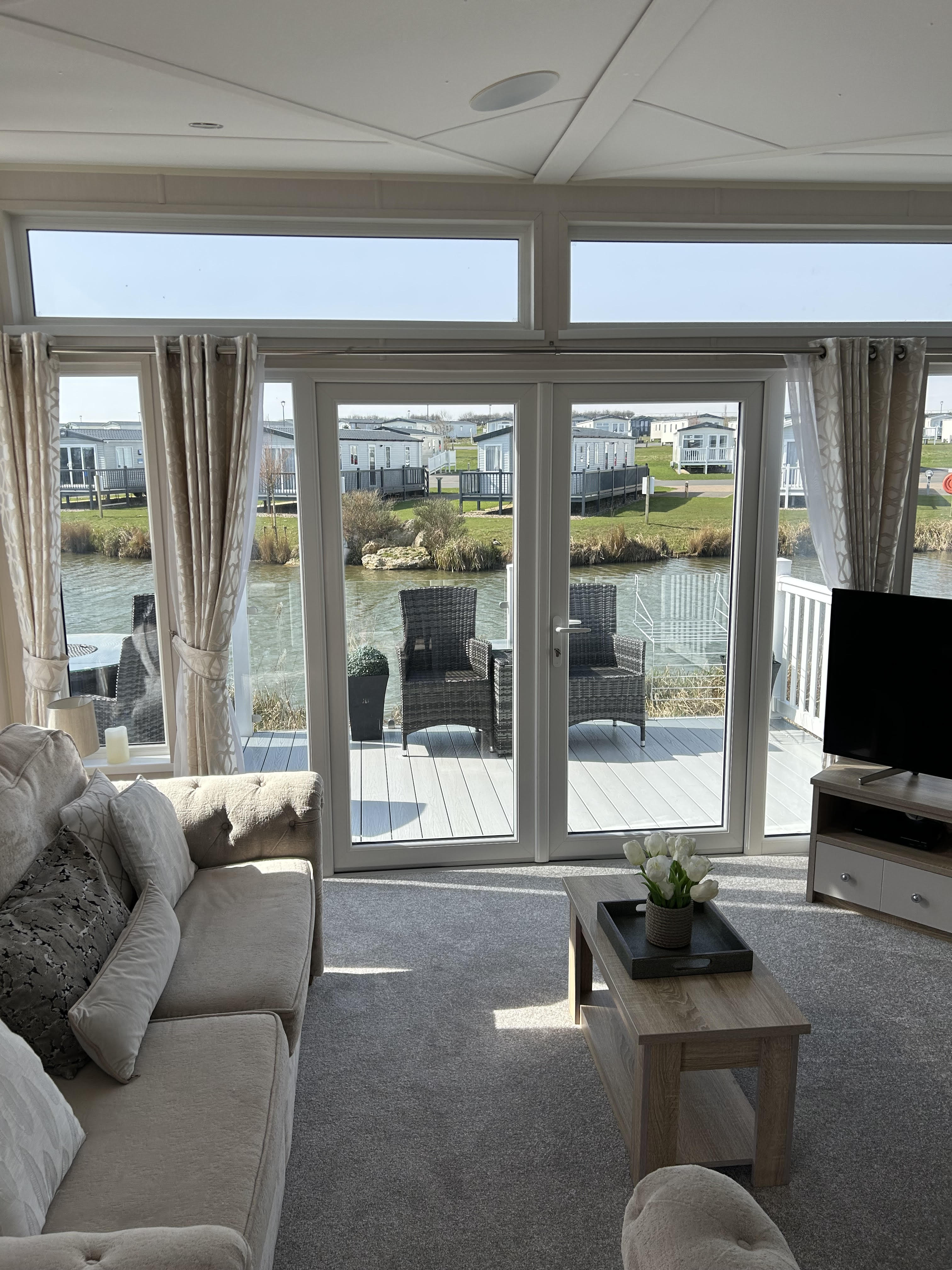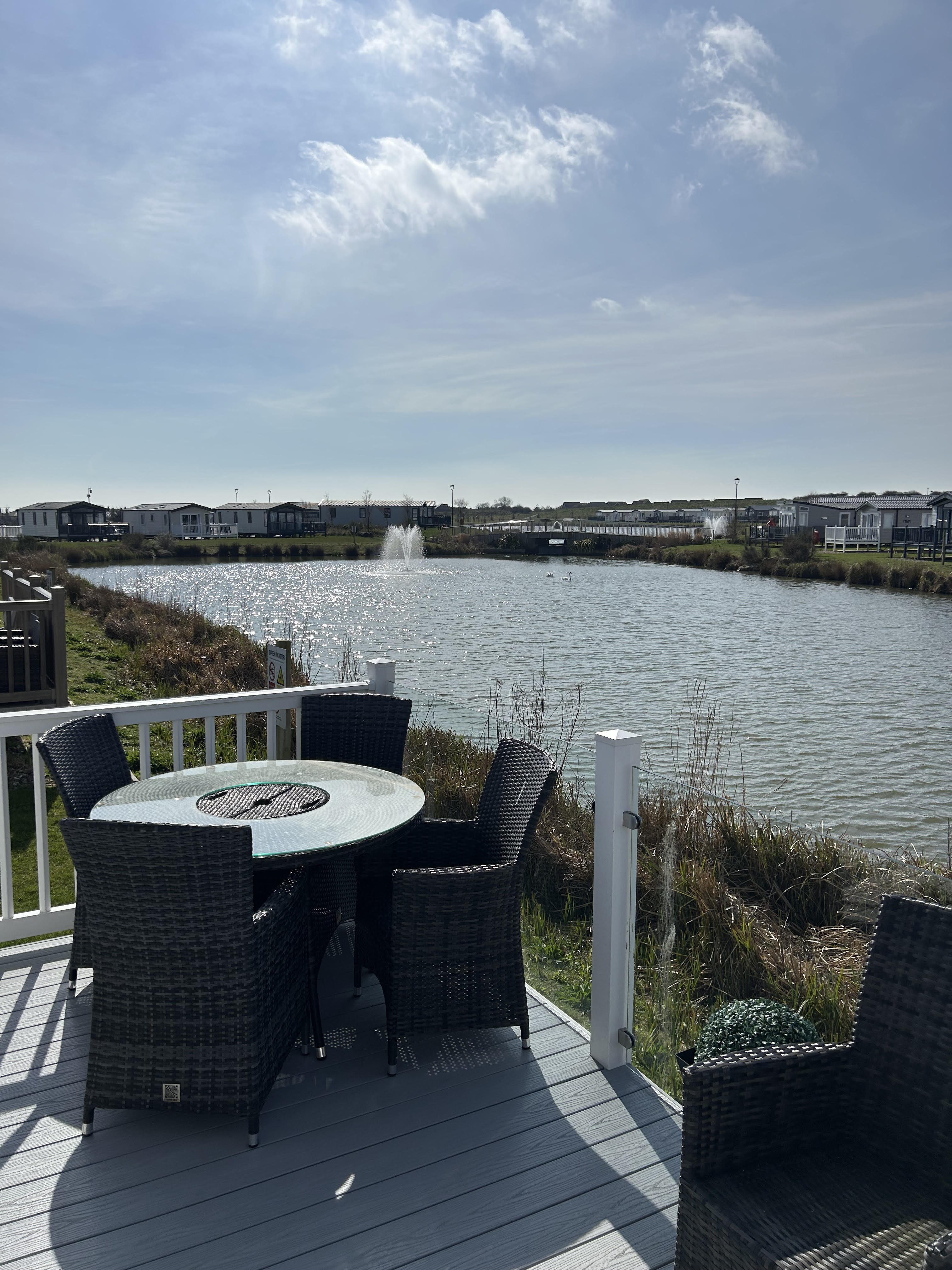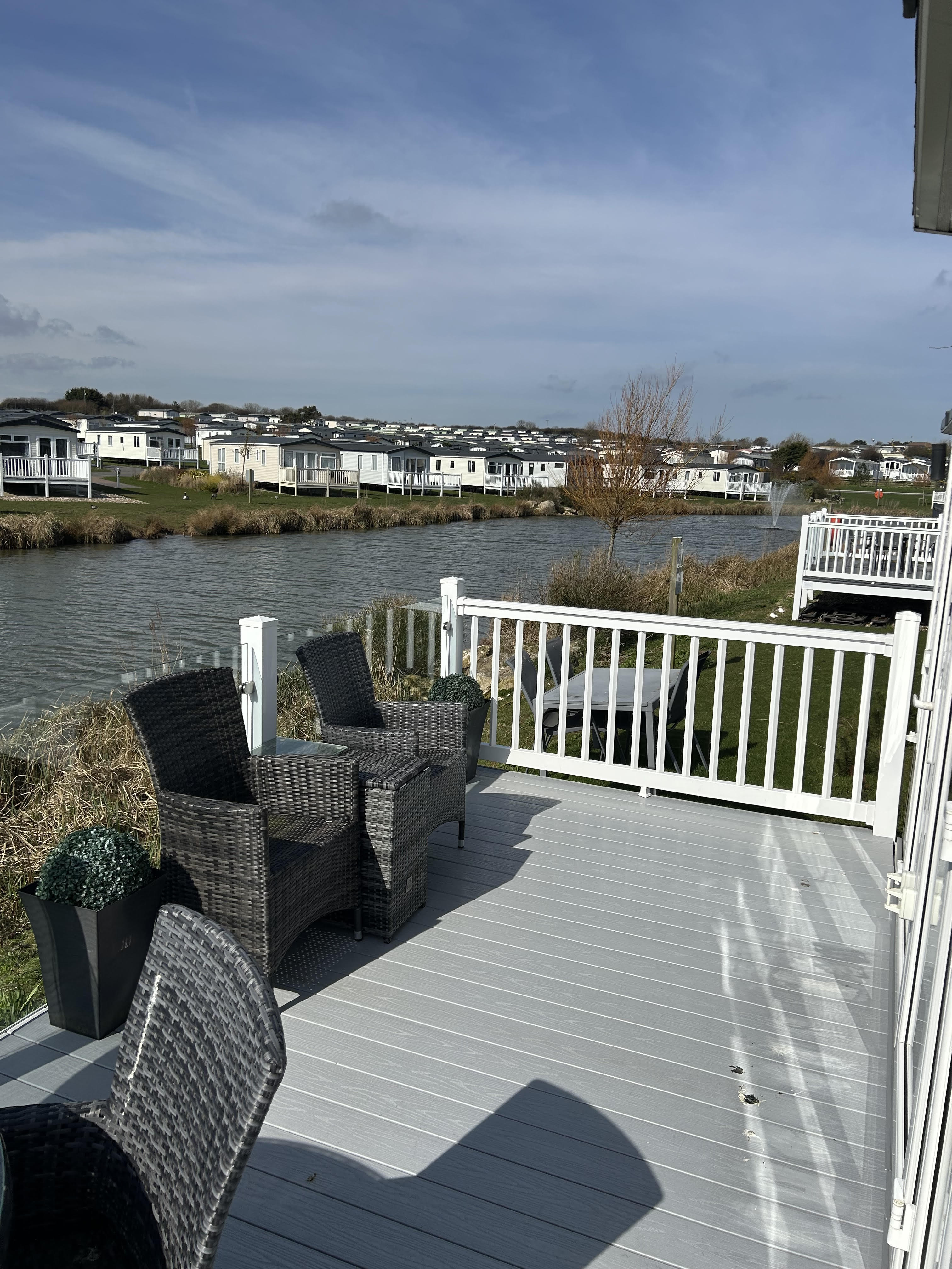 Stay in our luxury (2021 Vogue Classique model) 2 bed top of the range Holiday home with stunning views of the new lakeside development. With the added benefit of a spacious decked area boasting glass balustrading and contemporary outdoor furniture from only £130pn (low season).