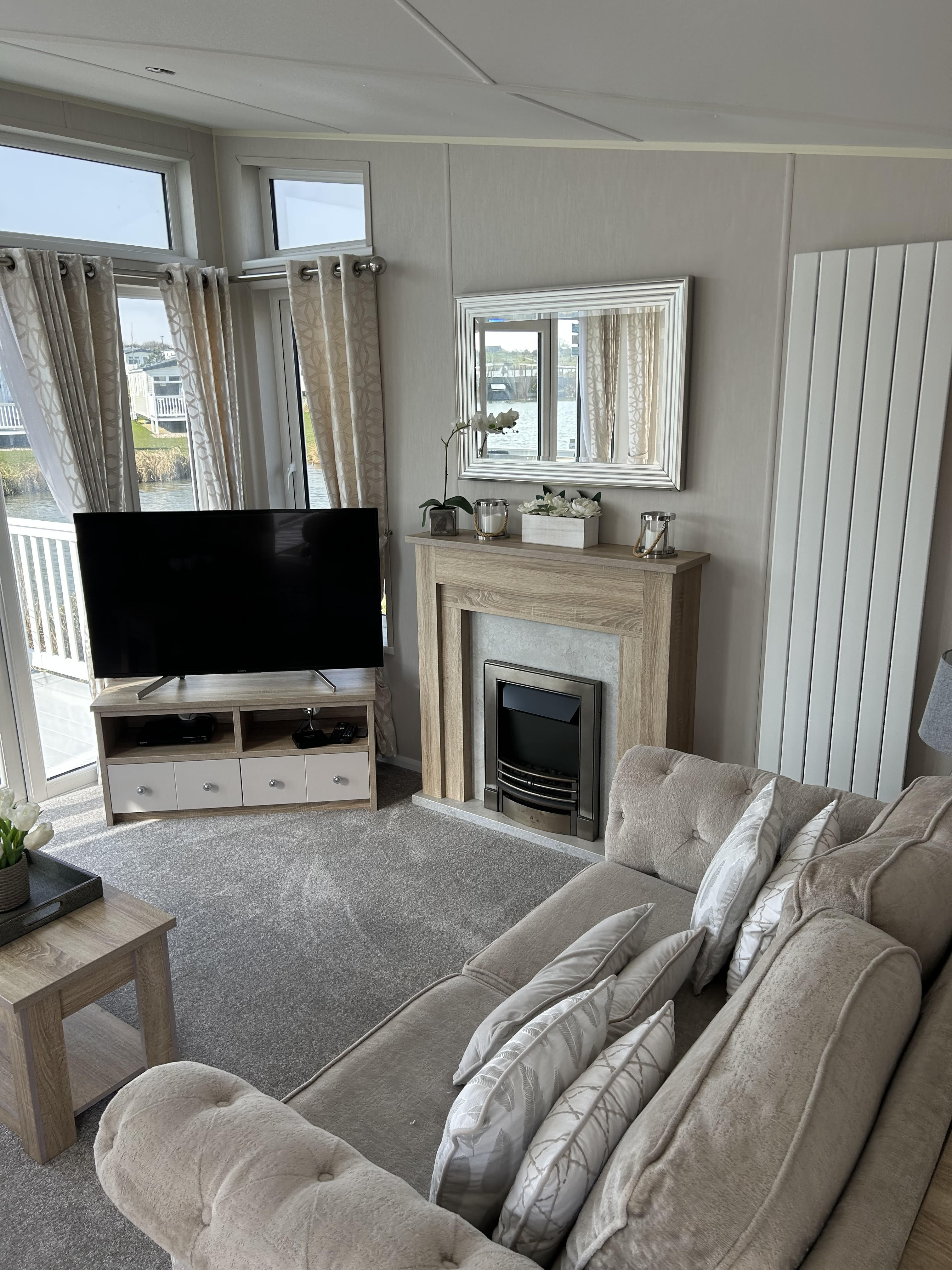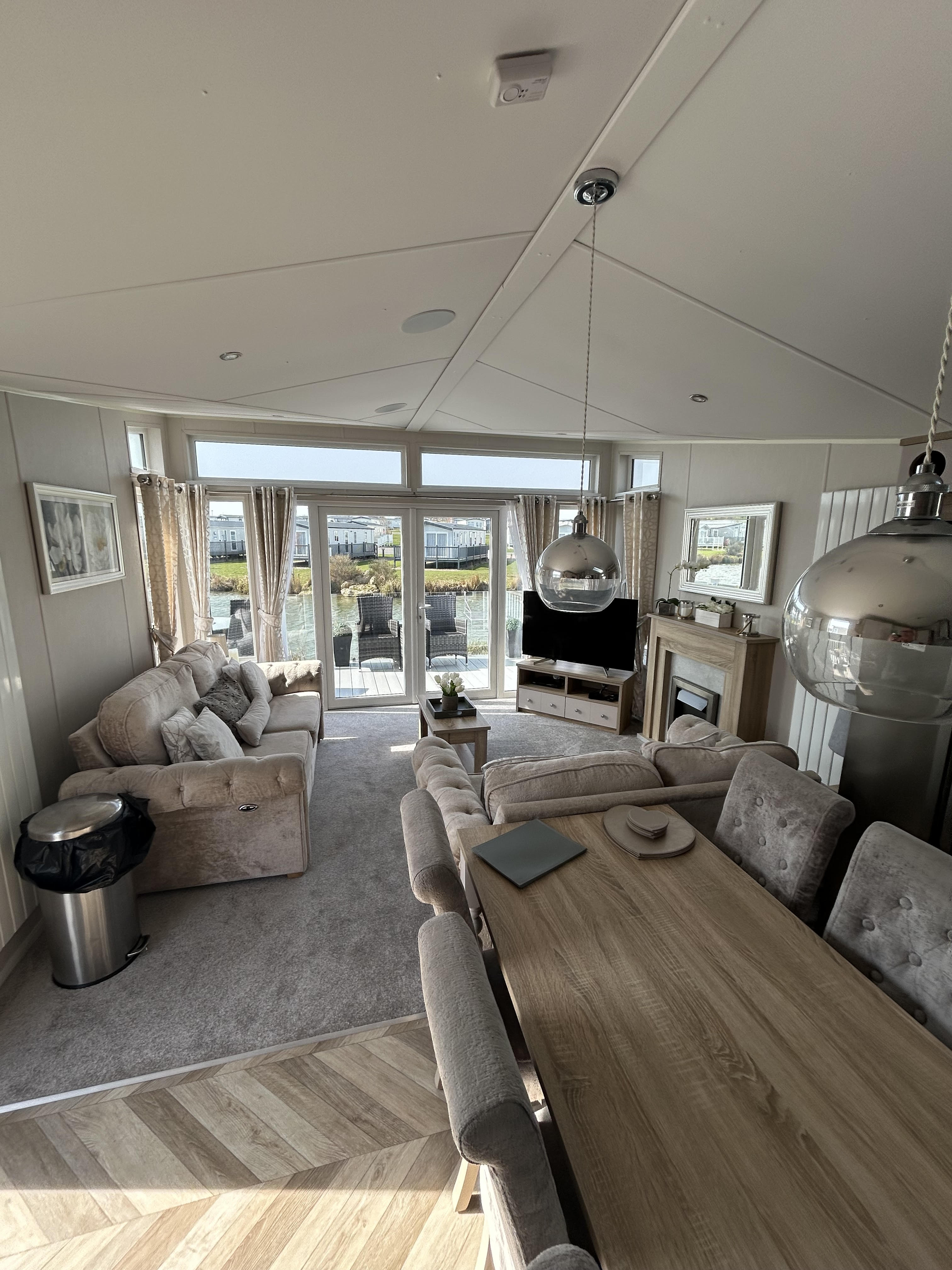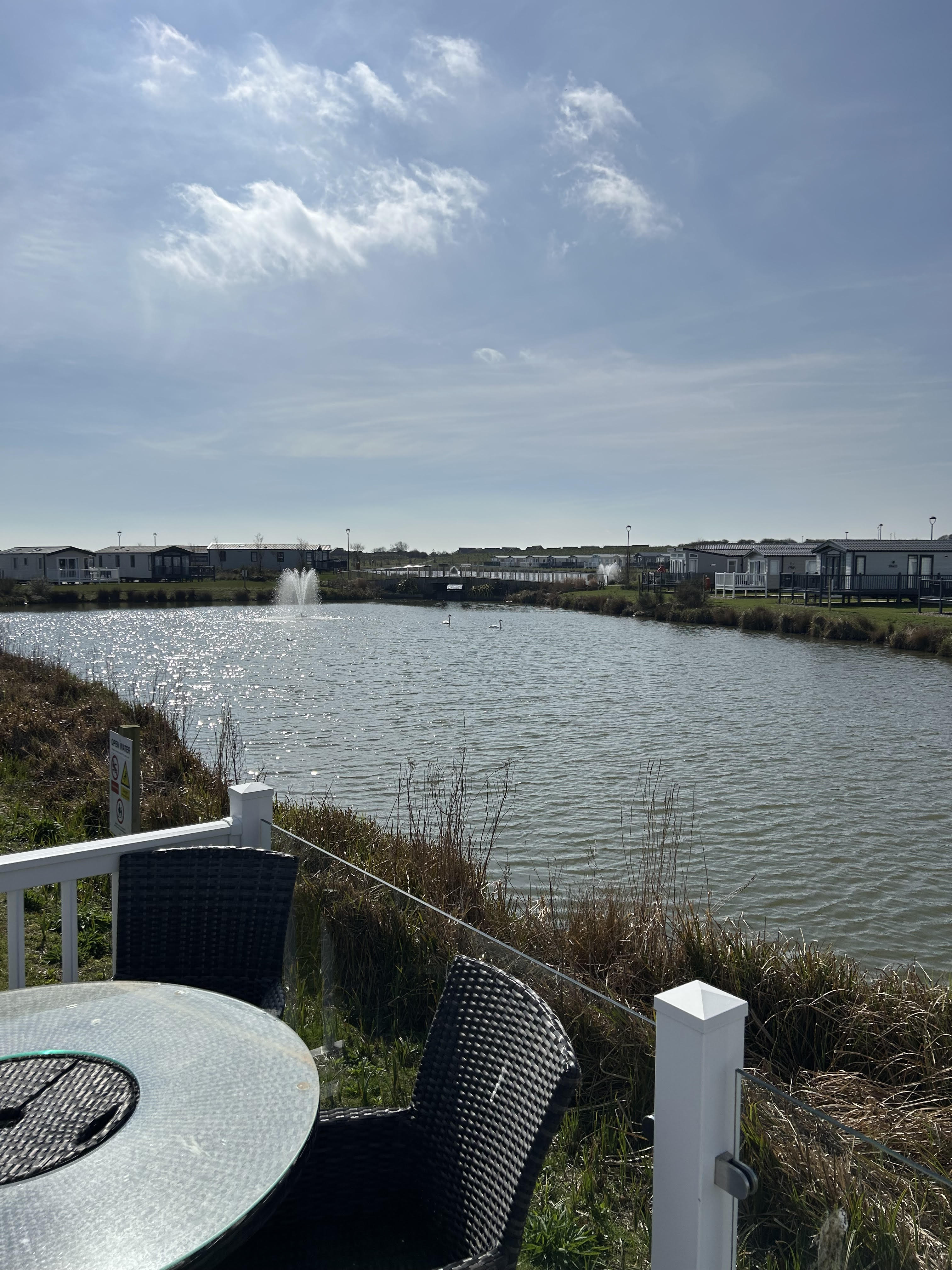 Stay in our luxury (2021 Vogue Classique model) 2 bed top of the range Holiday home with stunning views of the new lakeside development. With the added benefit of a spacious decked area boasting glass balustrading and contemporary outdoor furniture from only £130pn (low season).
