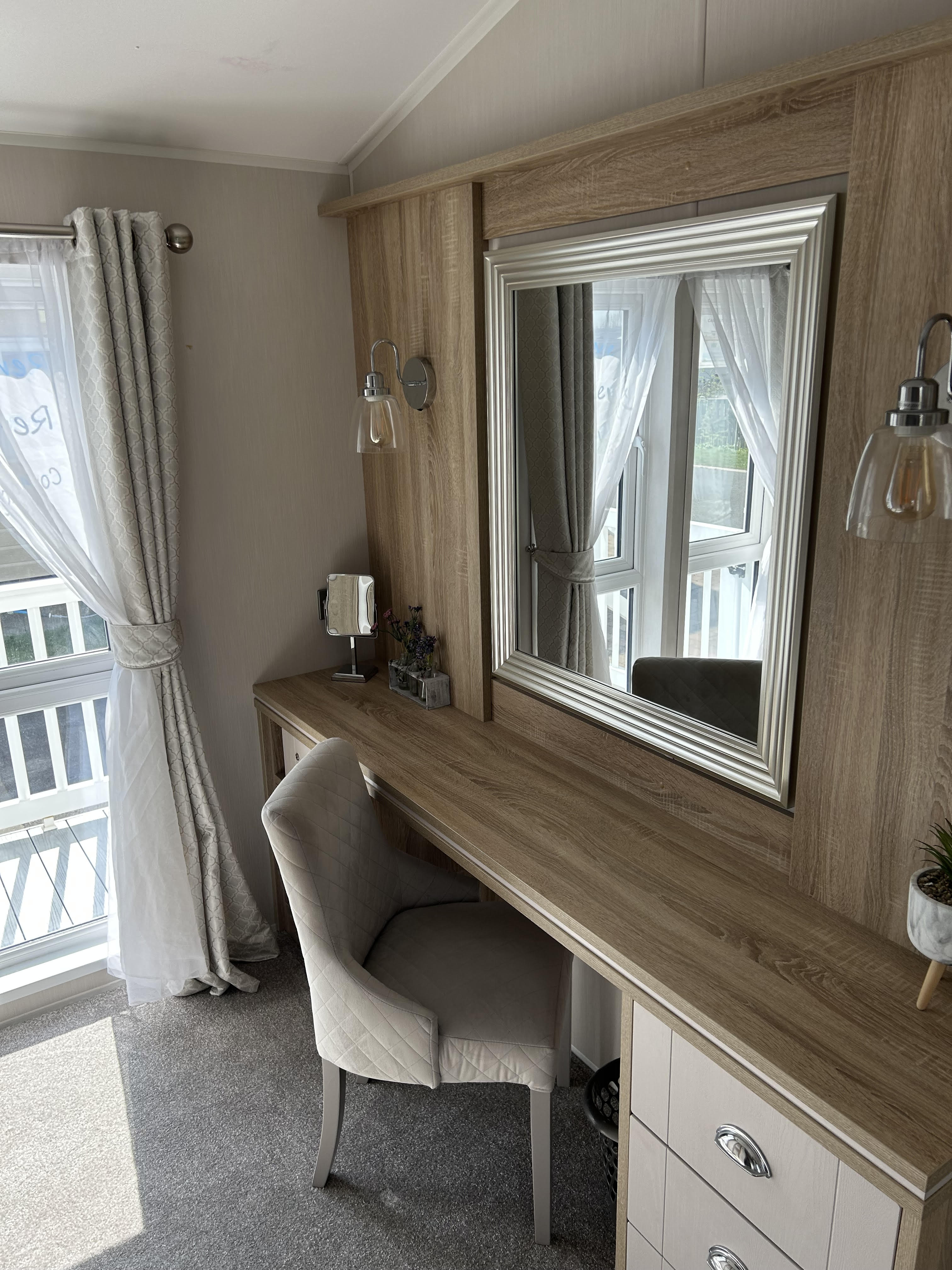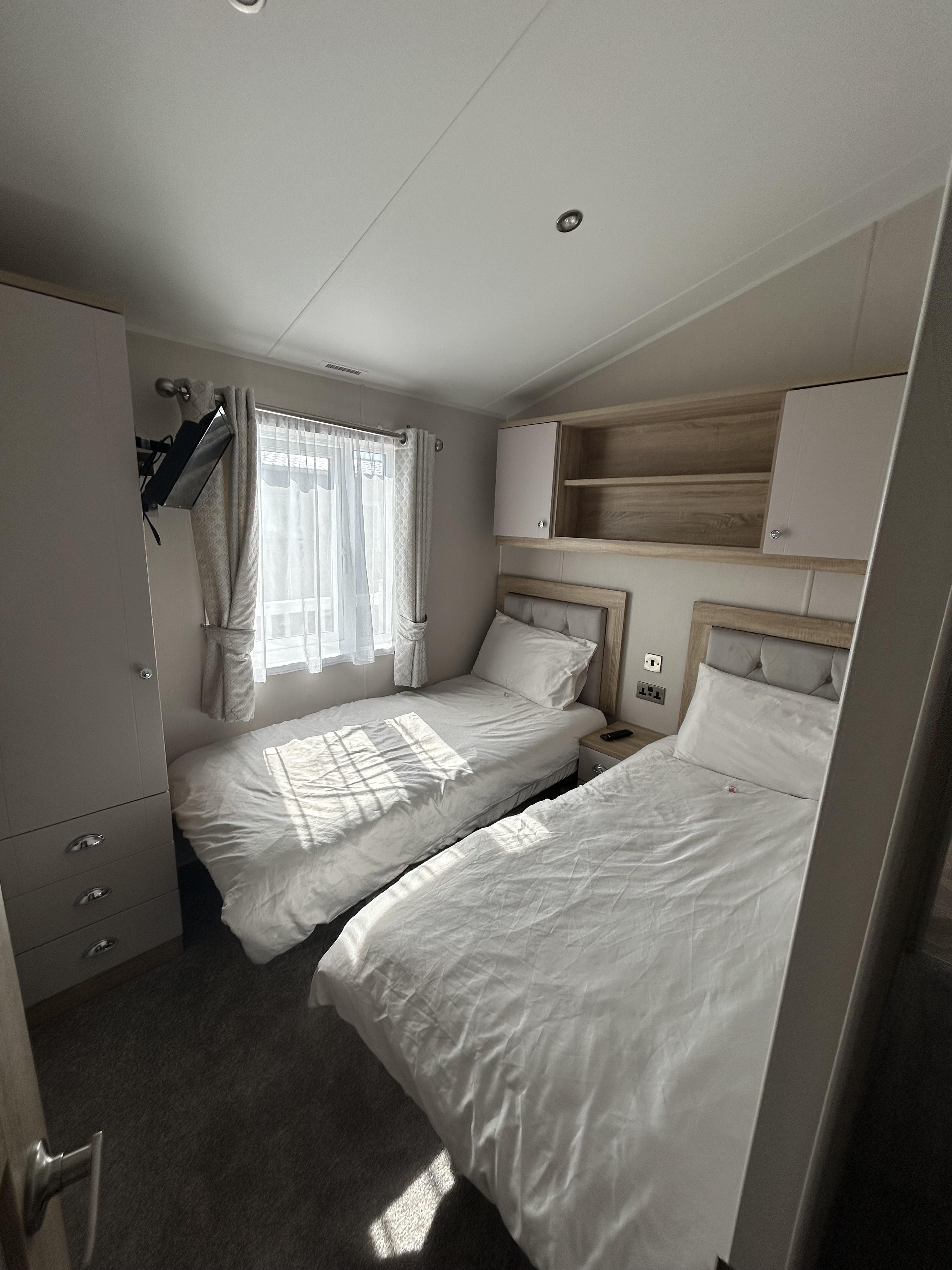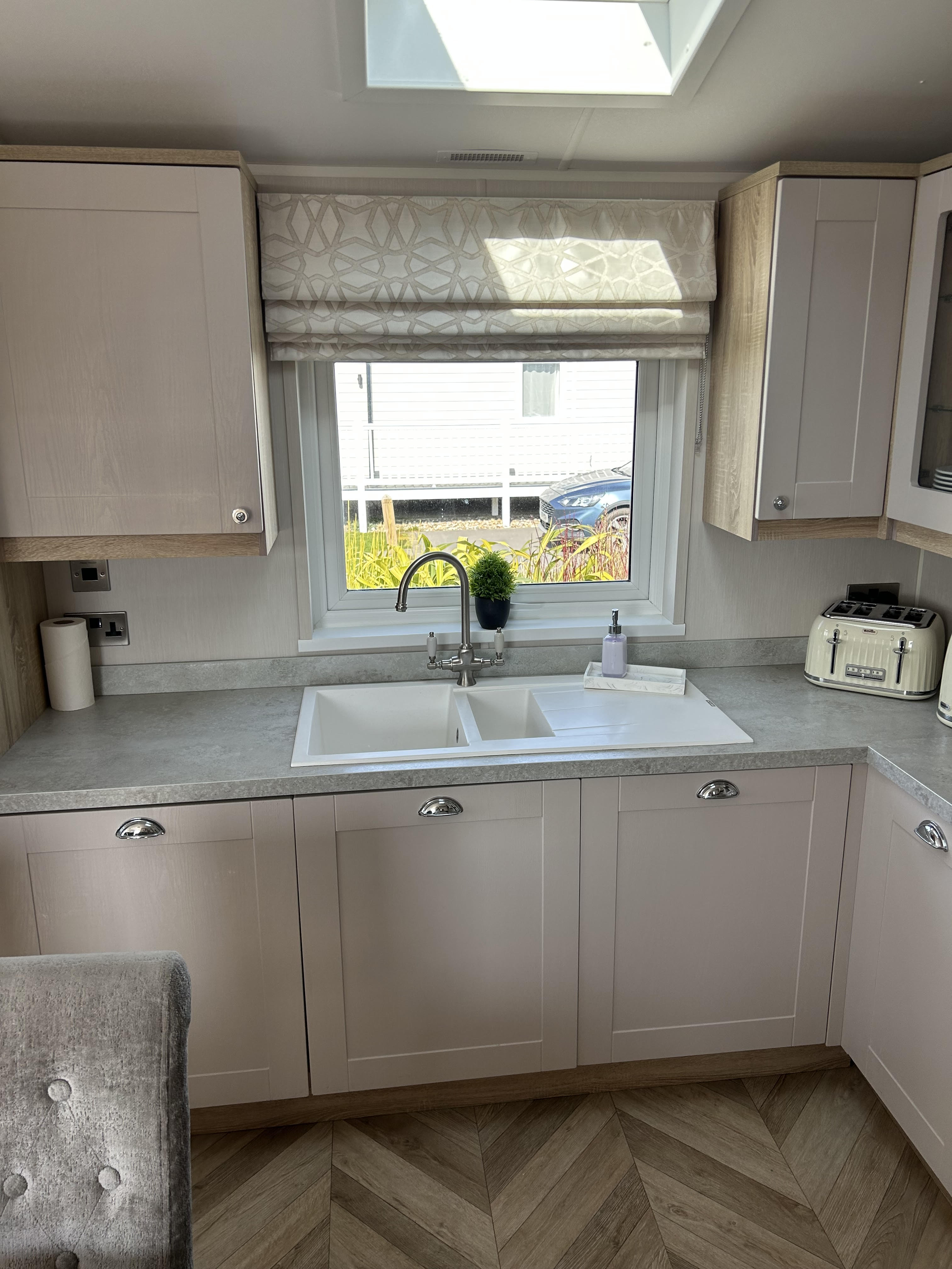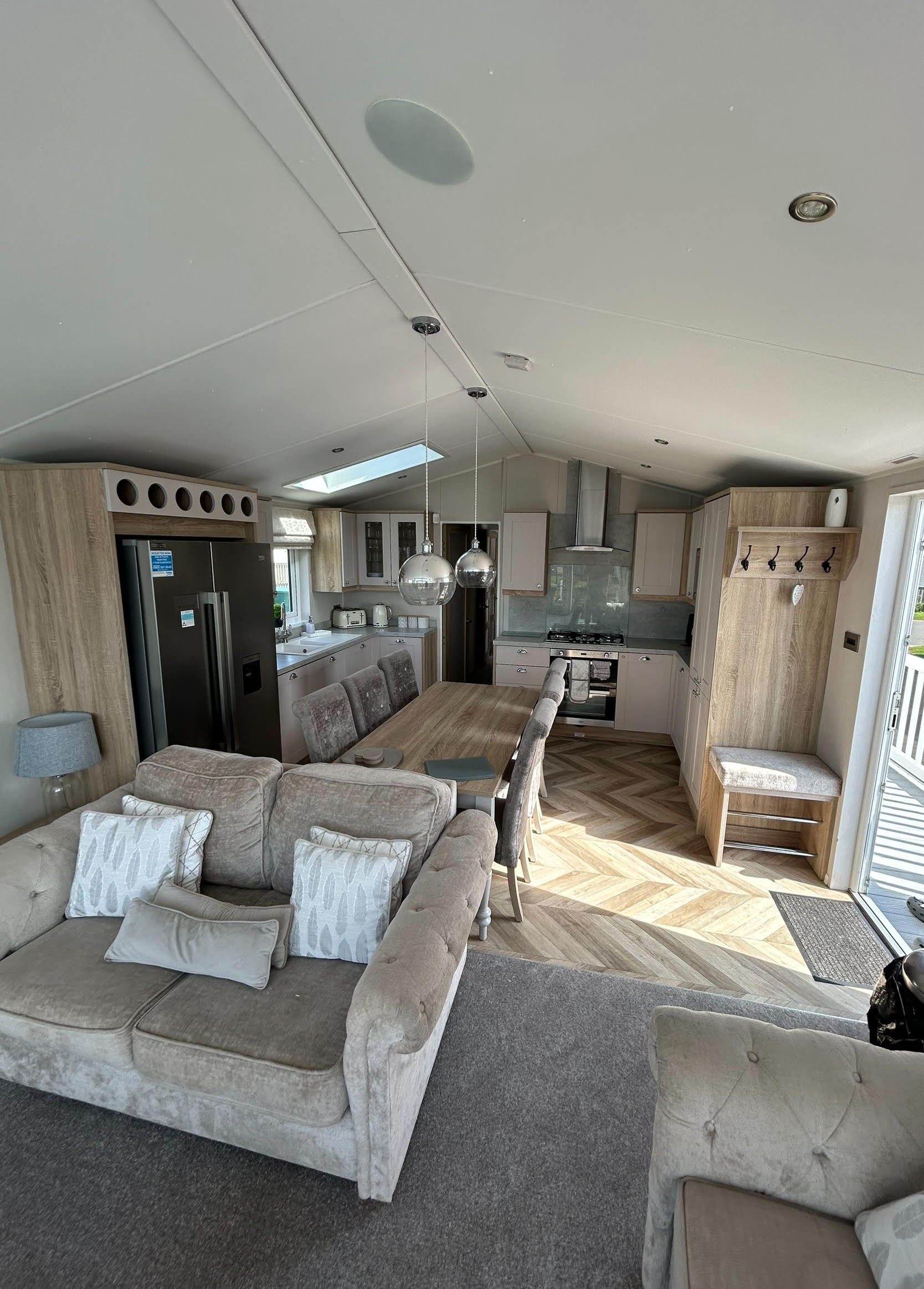 Stay in our luxury (2021 Vogue Classique model) 2 bed top of the range Holiday home with stunning views of the new lakeside development. With the added benefit of a spacious decked area boasting glass balustrading and contemporary outdoor furniture from only £130pn (low season).