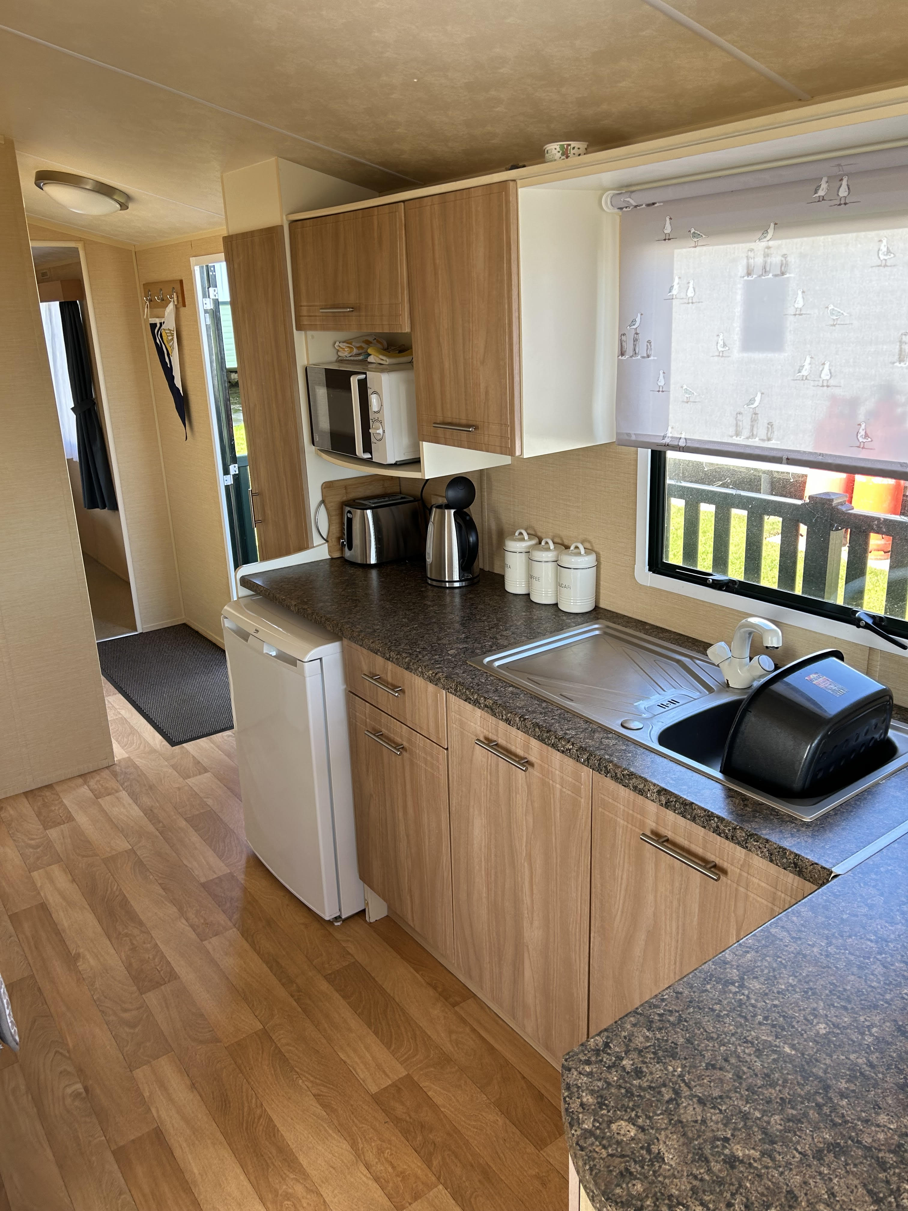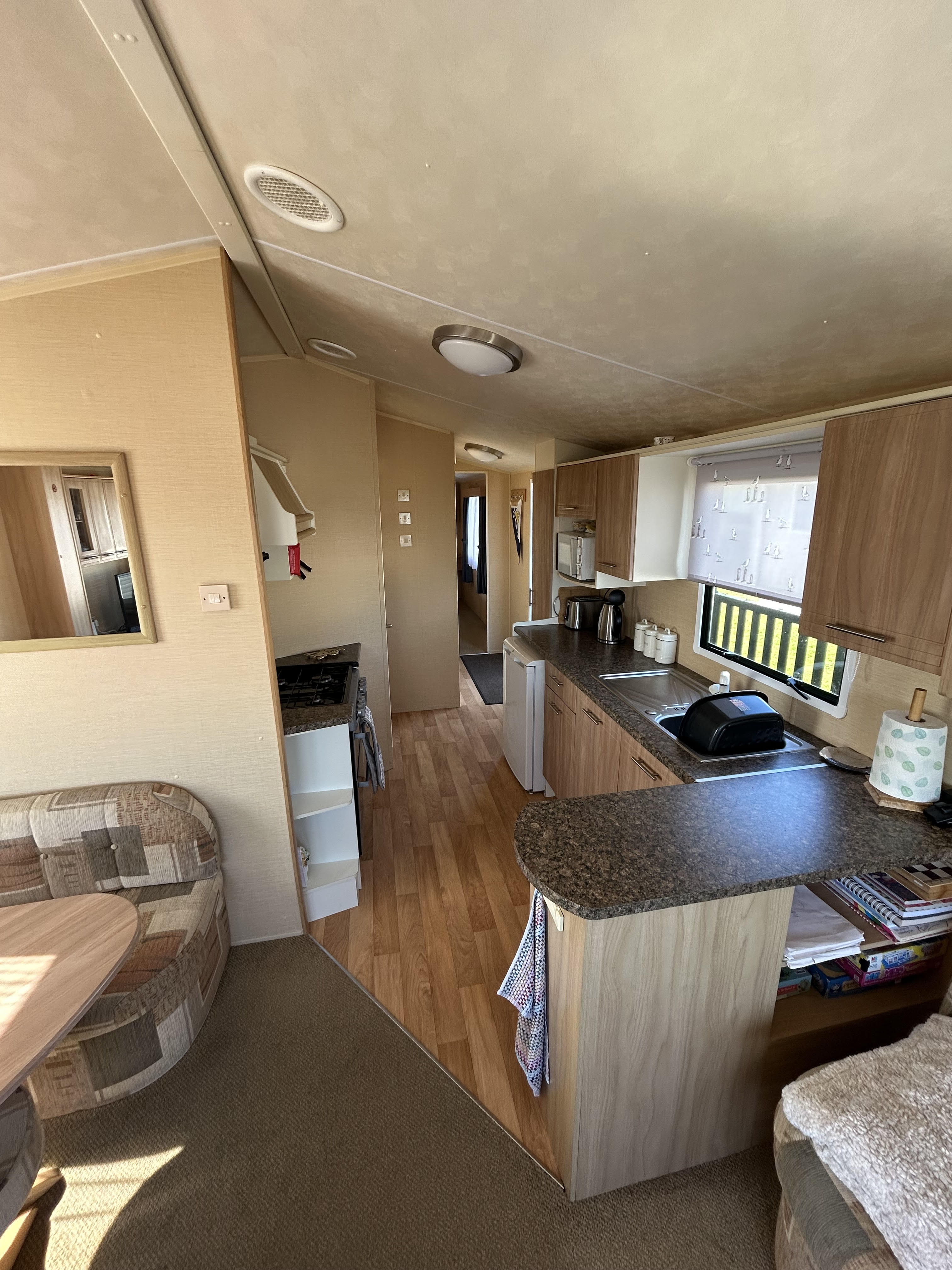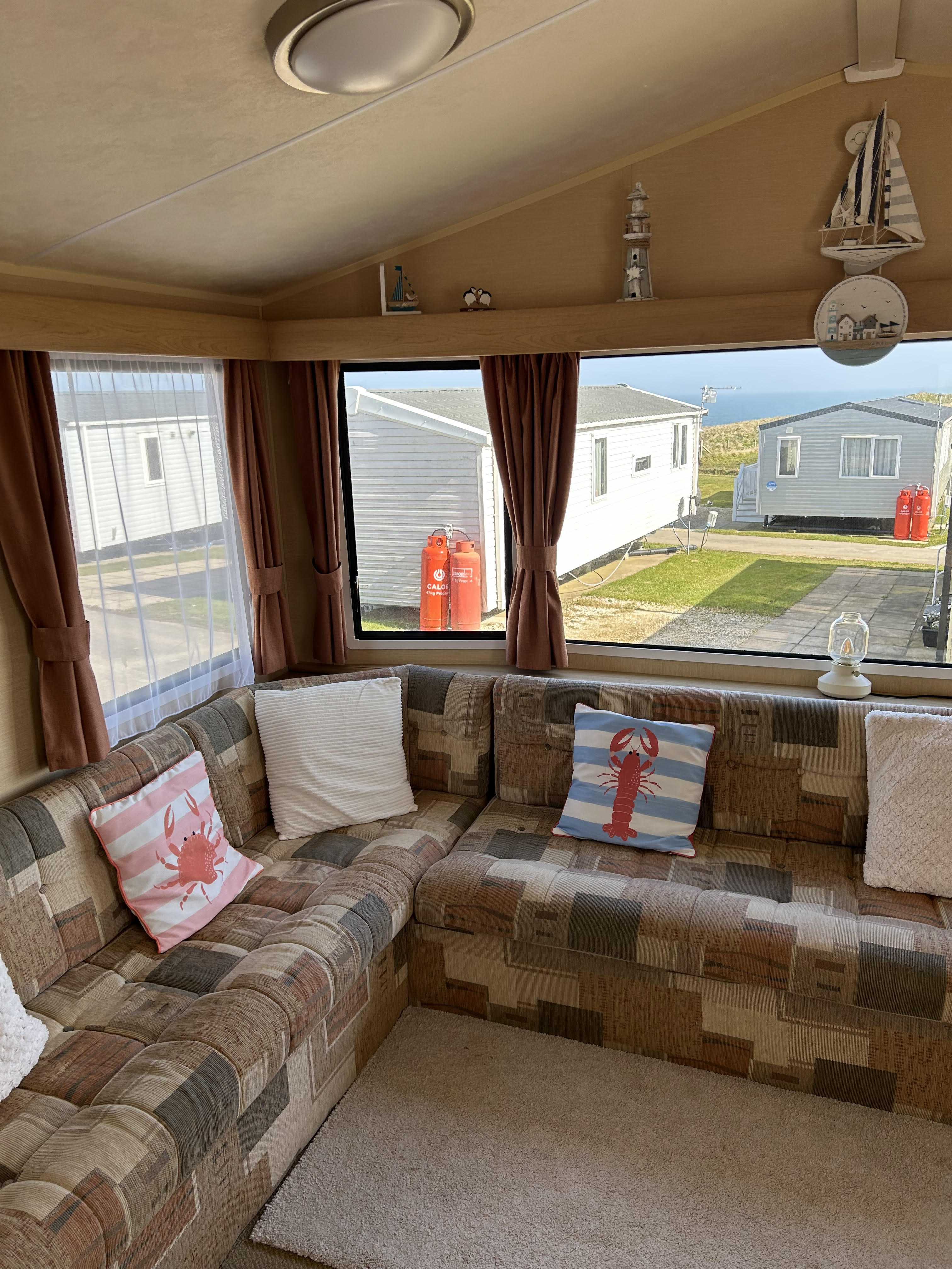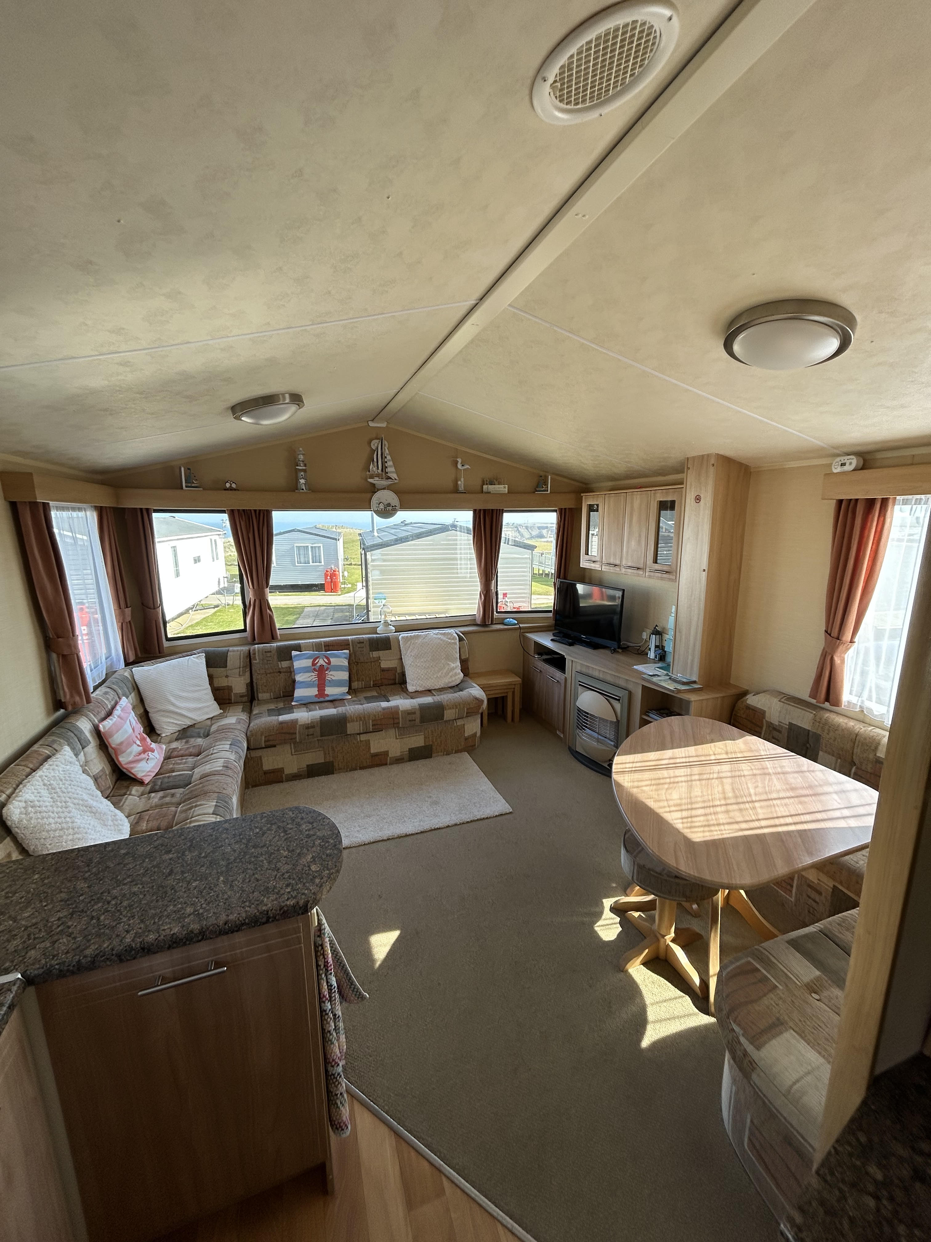A lovely, cosy & homely 2 bedroom caravan, with great sea views to the front and side of the caravan.