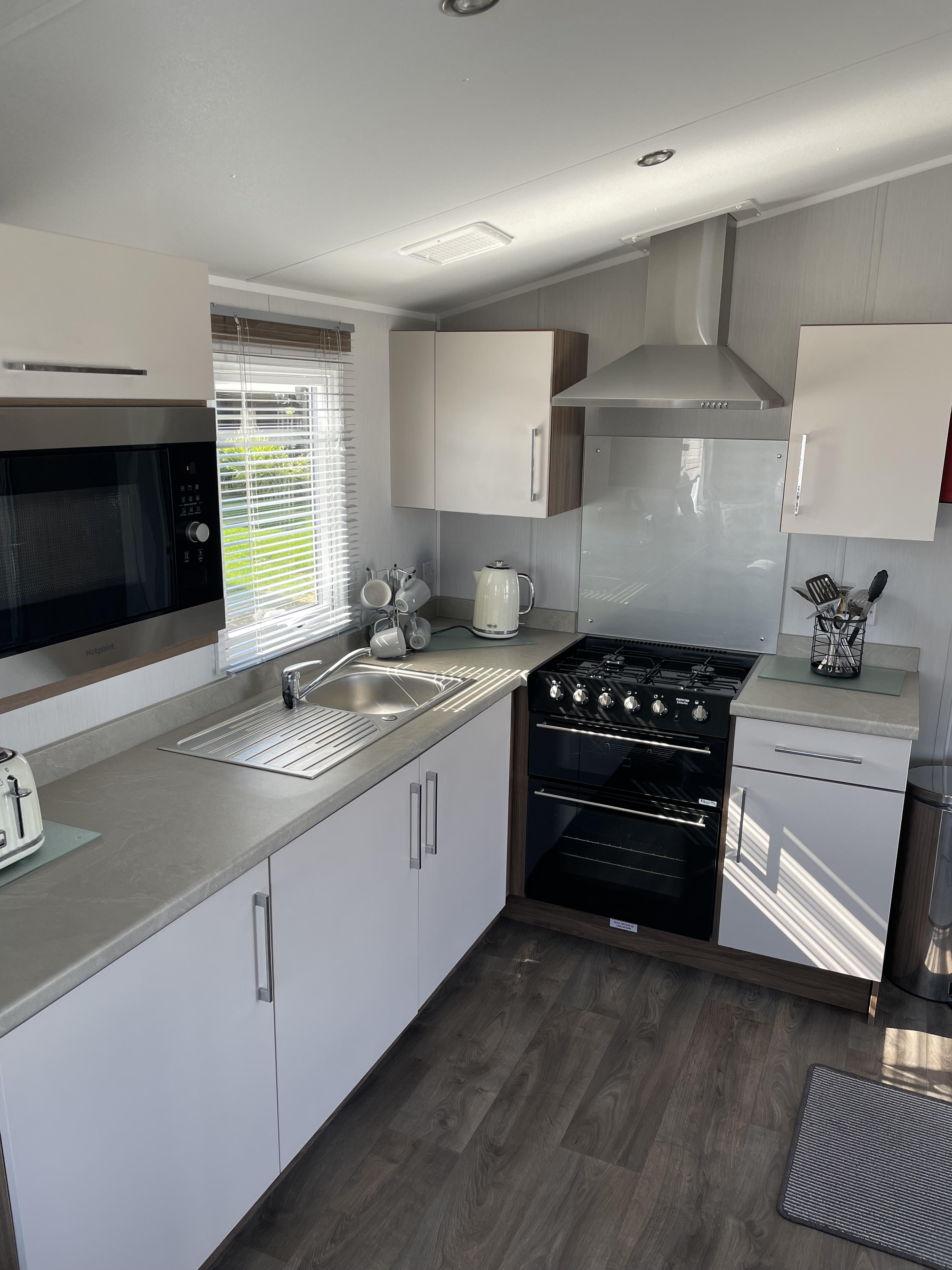 This caravan is modern and spacious with everything you will need for a perfect stay.